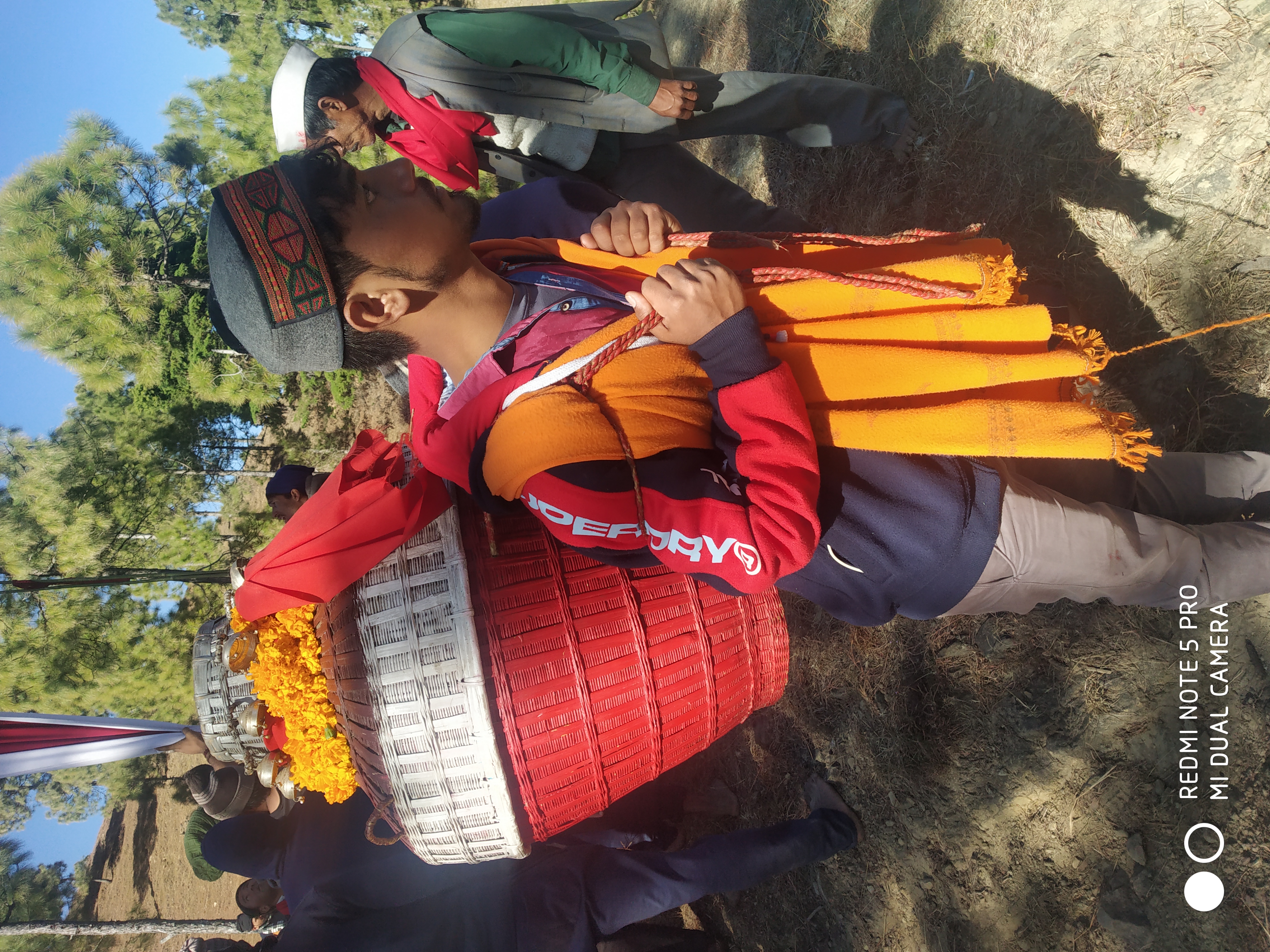 माँ भगवती की यात्रा में बड़ी श्रद्धा व भक्तिभाव से इस पवित्र पात्र(पिटारा) को पीठ व कंधों के सहारे,पांवों में बिना चप्पल-जूते पहने ले जाया जाता है।
